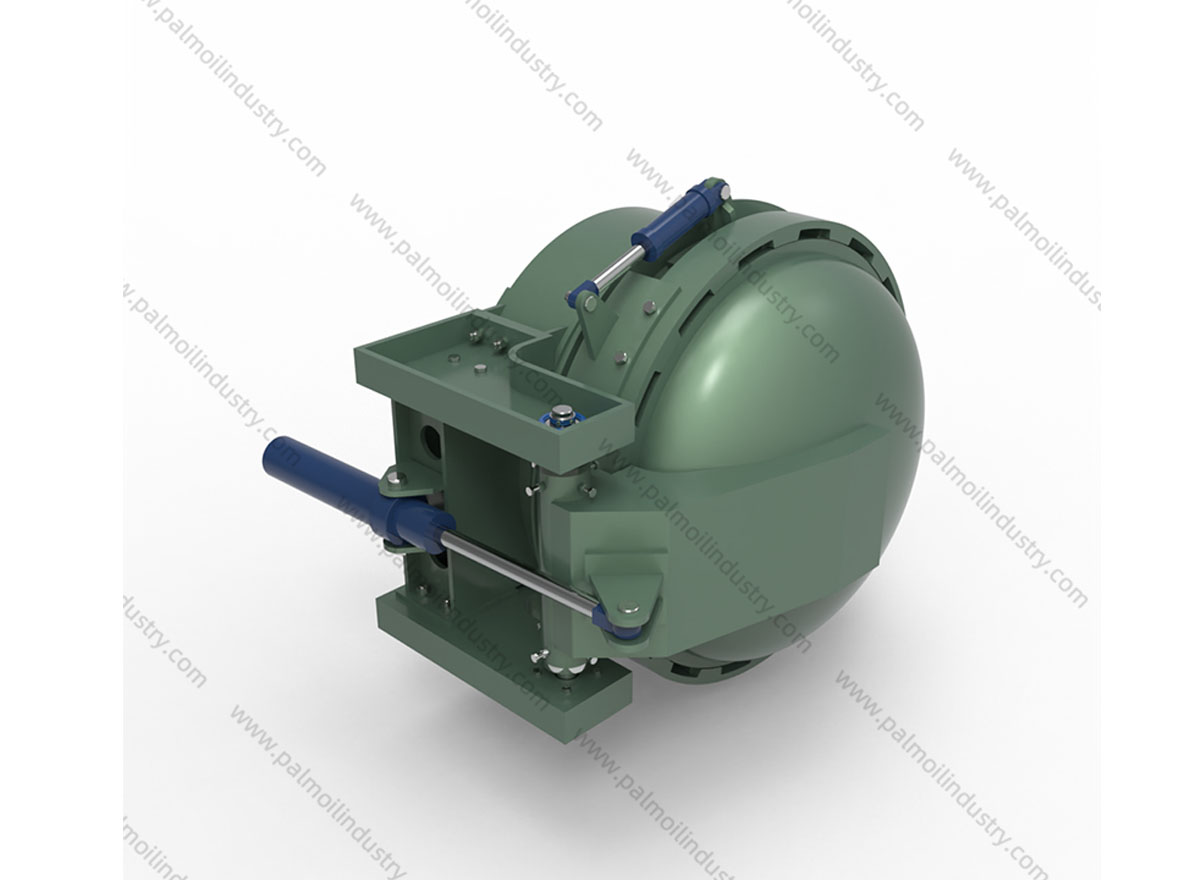 This hydraulic door is specifically designed for use in sterilizers within the palm oil processing industry. It is an essential part of systems that handle FFB sterilization, working in conjunction with vertical sterilizer tanks to provide an efficient and safe sterilization process. Its design and specifications make it suitable for integration into both new installations and existing facilities looking to upgrade their sterilization equipment.